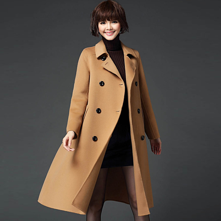 2015秋冬新款高端女裝全手工雙面呢羊絨大衣女毛呢外套中長款開衫 /
