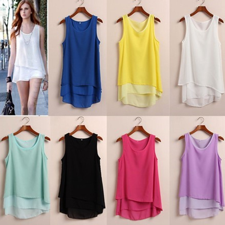 2015 新品女裝8色5碼糖果色百搭假兩件吊帶背心雪紡裙打底衫 /