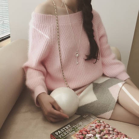 毛衣女2015秋冬新款打底衫韓版寬松中長款圓領(lǐng)套頭針織衫 /