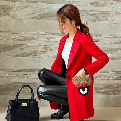 2015秋冬新款時尚潮流眼睫毛真毛呢子大衣女中長款外套 /
