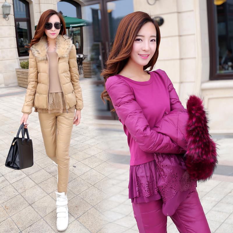 特批2015實拍白鴨絨羽絨服三件套女裝羽絨馬甲修身外套韓版 /