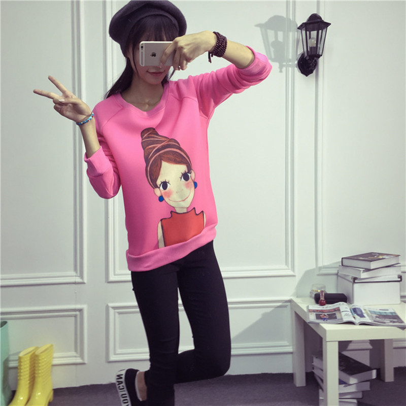 2015秋季新款韓版太空棉加厚寬松卡通娃娃套頭圓領長袖衛(wèi)衣女潮 /