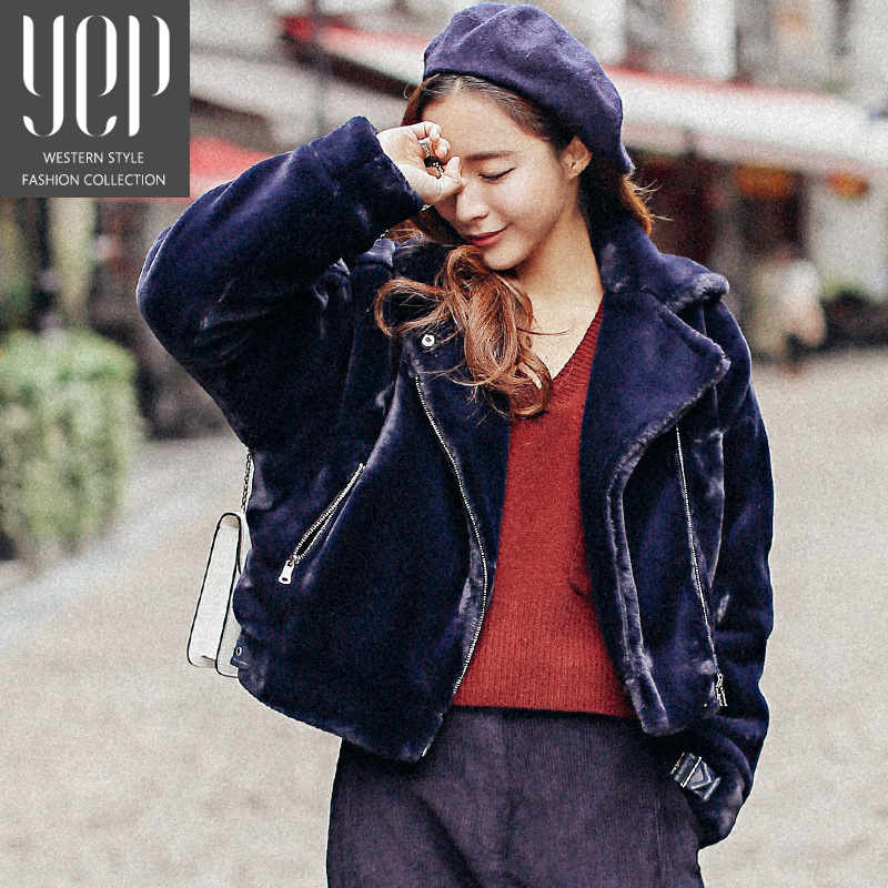 YEP2015冬裝新品韓版修身帥氣個(gè)性機(jī)車(chē)夾克毛絨厚短外套上衣潮女 /