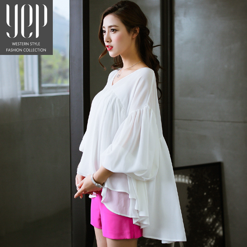 YEP!2015夏新款歐美超仙寬松燈籠袖雪紡上衣雪紡衫吊帶兩件套 女 /