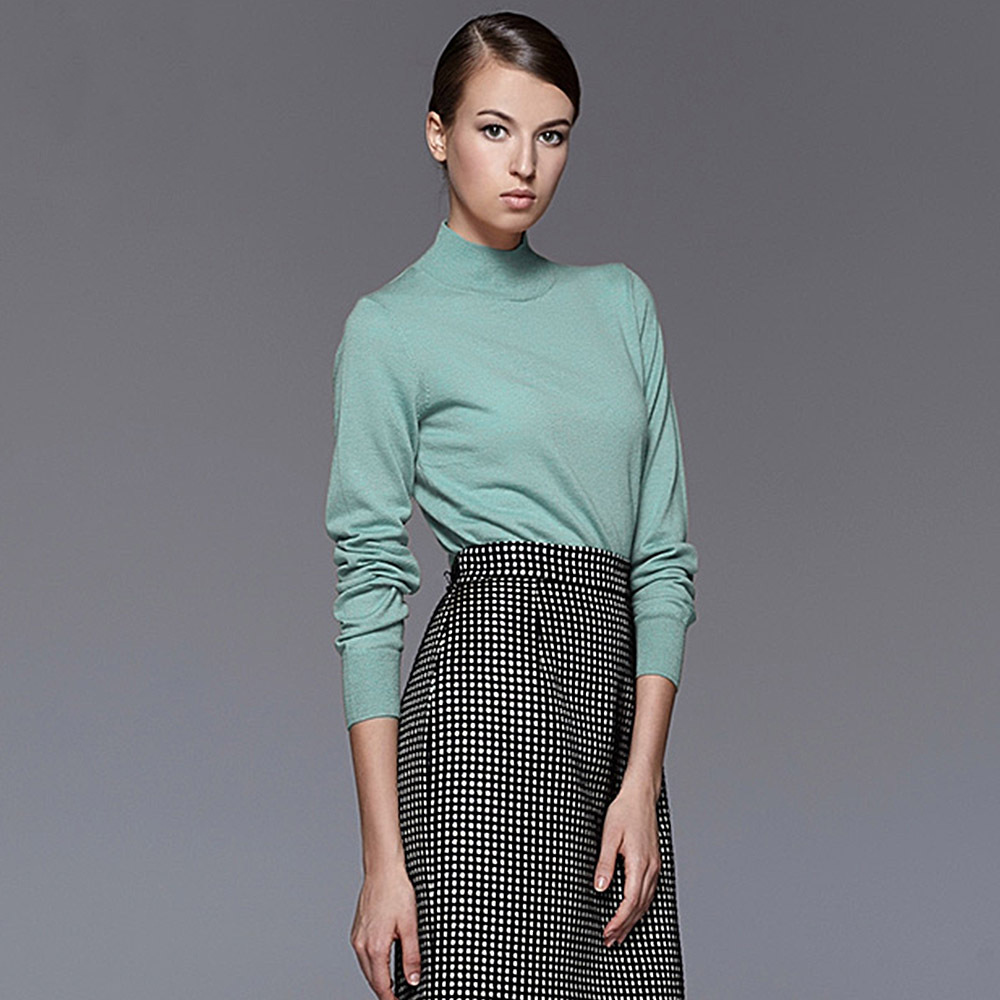 淘工廠代理加工定做冬裝新款高領(lǐng)打底針織衫套頭毛衣短款羊毛衫女 /