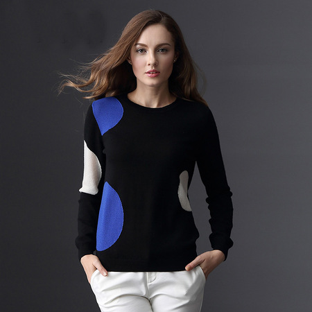 淘工廠定制ELLE同款秋冬高檔撞色波點針織衫保暖修身時尚羊毛女衫 /