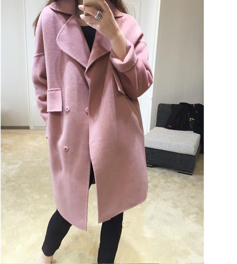 2015秋冬粉色女裝新款甜美中長款氣質(zhì)毛呢外套修身型呢子大衣女 /