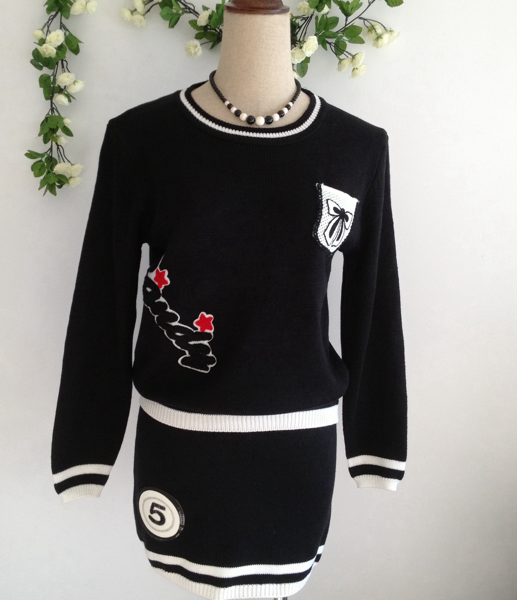 2015秋冬新款外貿(mào)女裝運動休閑長袖短裙兩件套裝針織毛衫 /