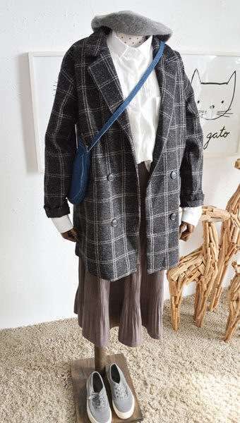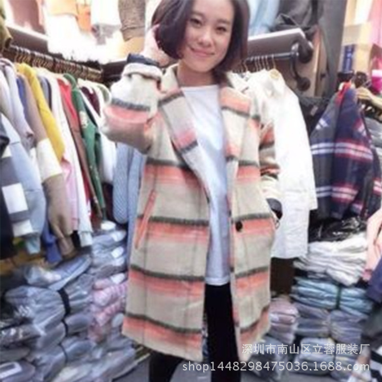 立蓉/韓國東大門代購寬松格子韓版毛妮大衣外套女裝批發(fā)YY888 /