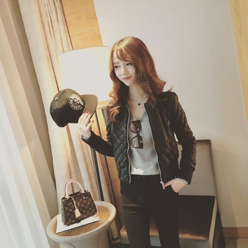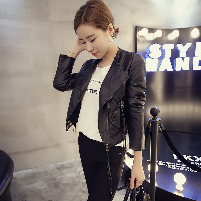 【小穎家】2015秋裝新款韓版拉鏈長(zhǎng)袖簡(jiǎn)約修身顯瘦短款皮衣外套女 /