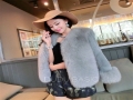 獺兔毛皮草七分袖圓領(lǐng)中長款外套修身時尚品牌加厚保暖大衣外套 /