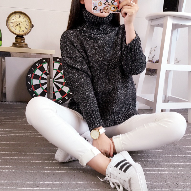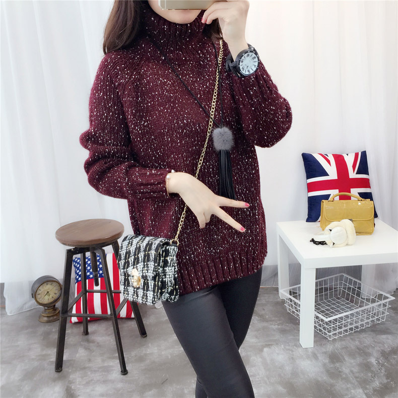 秋冬新款毛衣2015學(xué)院純色高領(lǐng)套頭花線開叉粗線針織毛衣女裝外搭 /