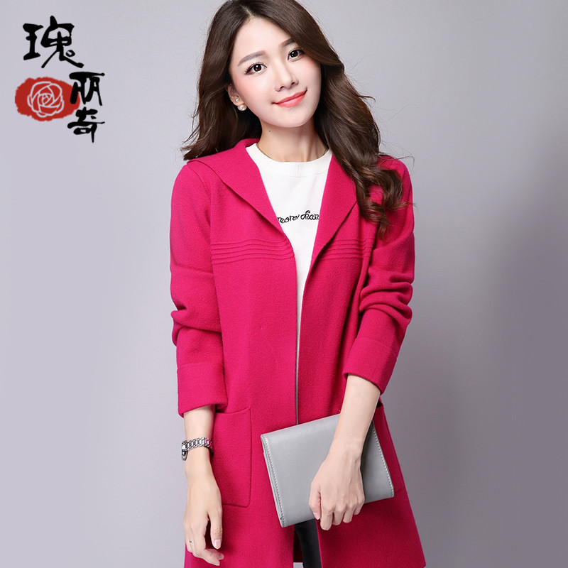 韓國代購2015秋冬新品女式針織衫 純色西裝領(lǐng)修身中長(zhǎng)款毛衣開衫 /