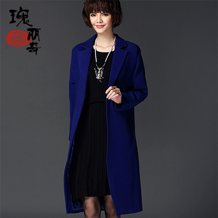 歐美氣質(zhì)寬松長(zhǎng)款西裝領(lǐng)呢子大衣 秋冬季純色新款女雙面呢開衫 /