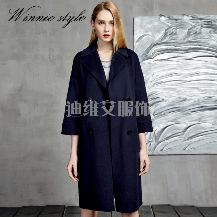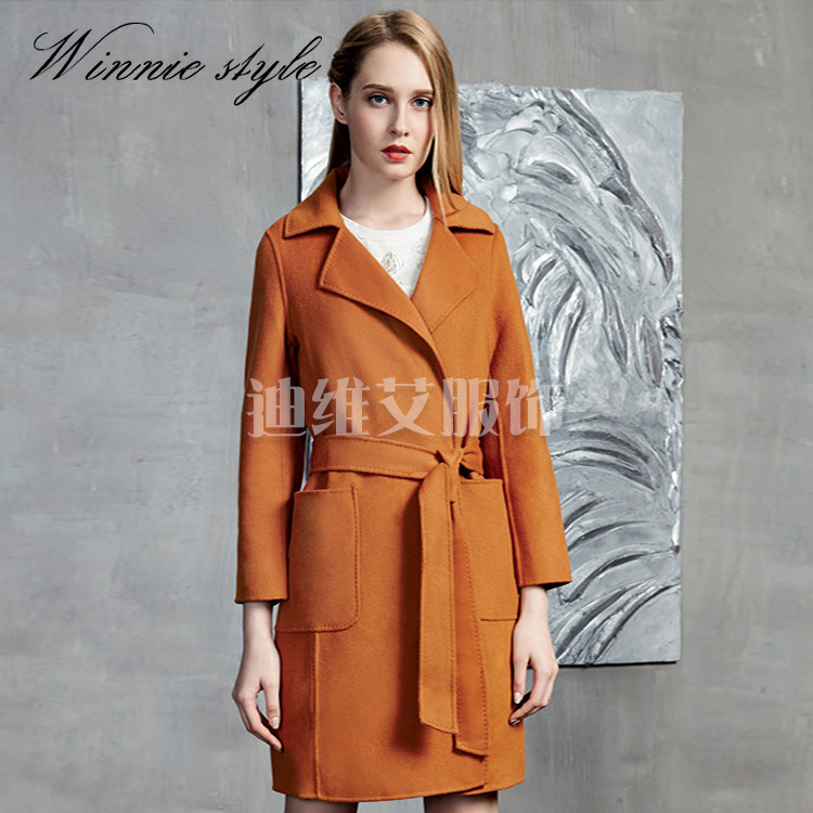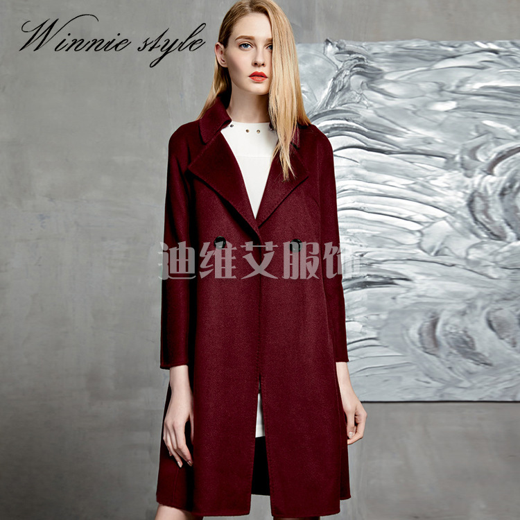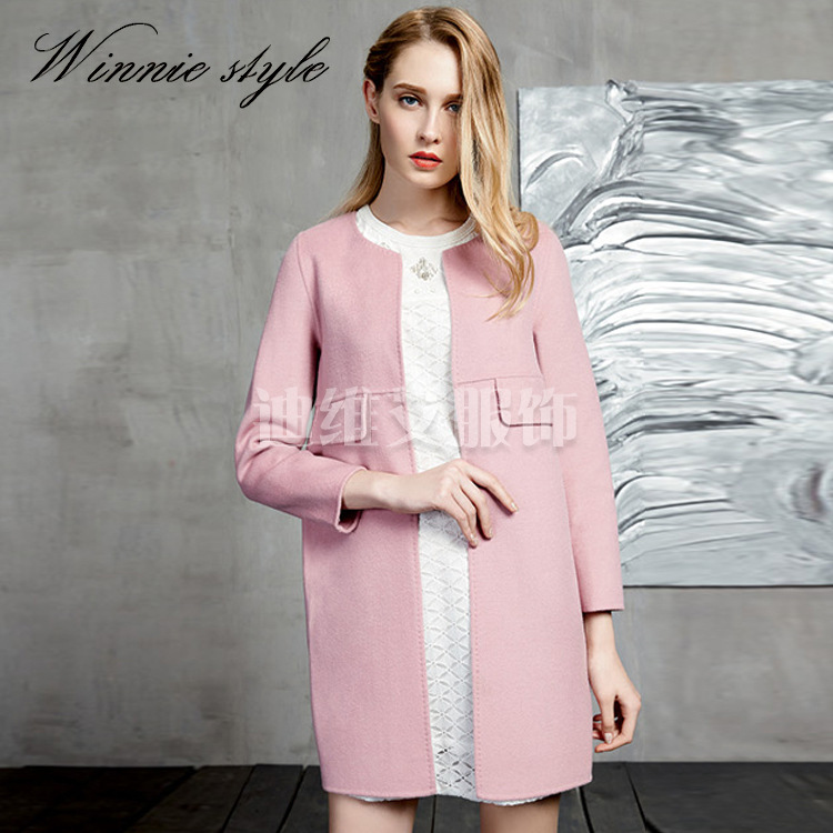 2015冬季新款雙面羊絨大衣女高端自主設(shè)計(jì)歐美毛呢外套女長款批發(fā) /