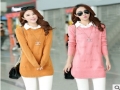 2015春秋冬中長(zhǎng)款女韓版襯衫領(lǐng)針織打底衫套頭釘珠蝴蝶結(jié)寬松毛衣 /