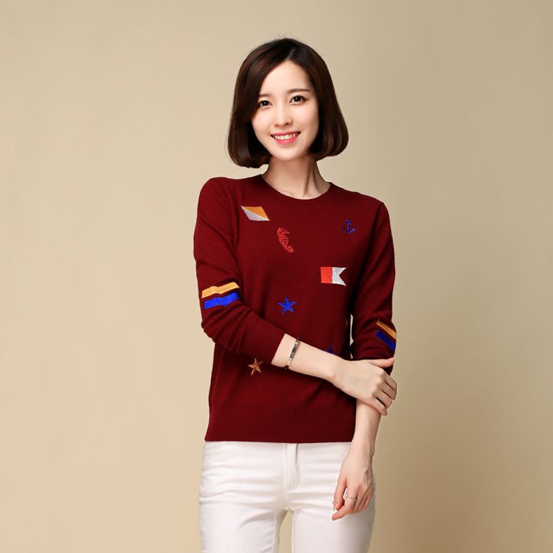 套頭毛衣女秋裝新款韓版100%羊毛衫修身女式針織衫打底衫廠家貨源 /