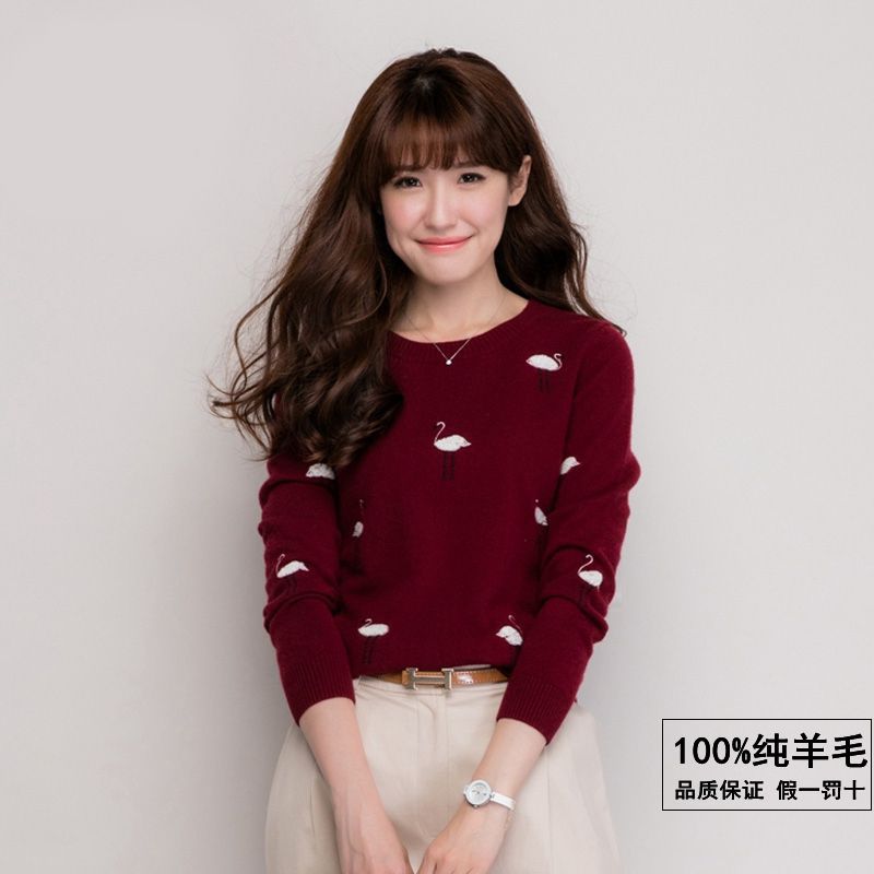 冬裝新品毛衣女天鵝繡花厚款長袖保暖韓國甜美純羊毛打底衫東大門 /