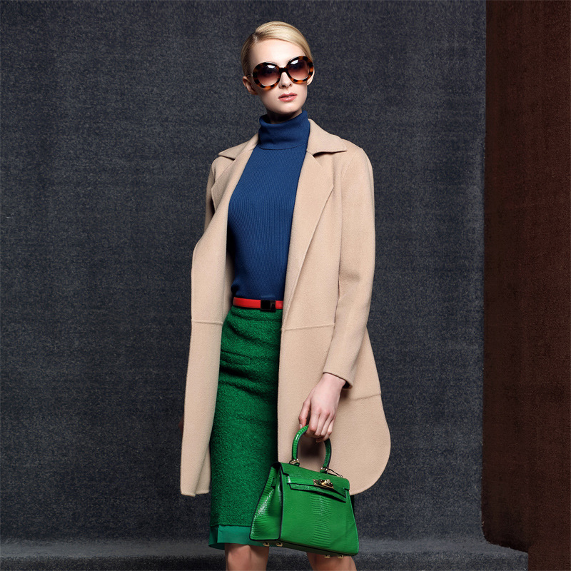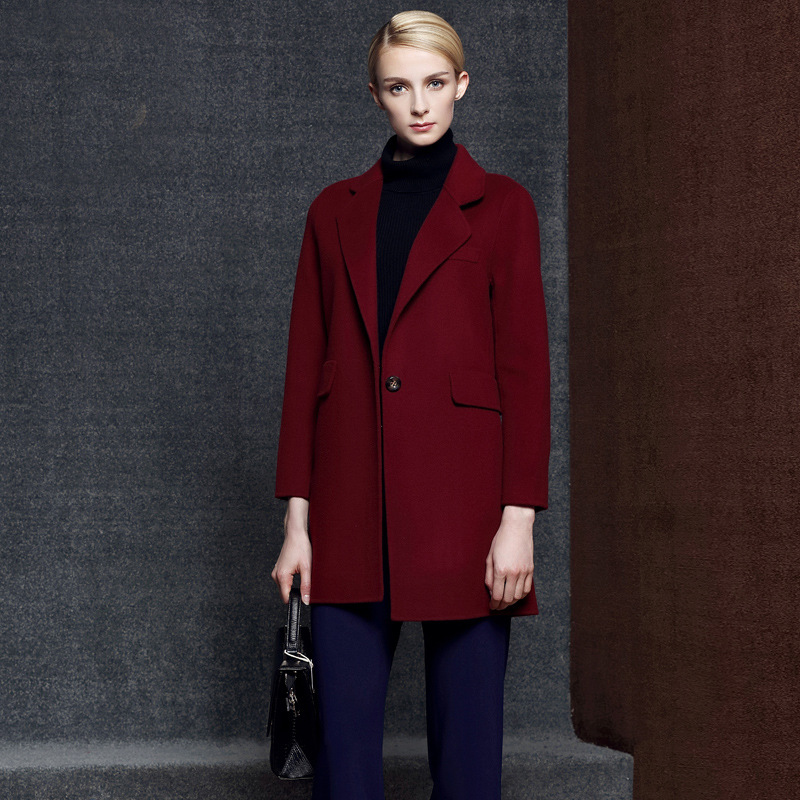 歐乙緣品牌歐版西裝領修身中長款羊毛呢外套女雙面羊絨大衣女批發(fā) /