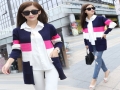 2015秋裝新款毛衣韓版條紋女式針織衫 女裝寬松大碼長袖披肩開衫 /