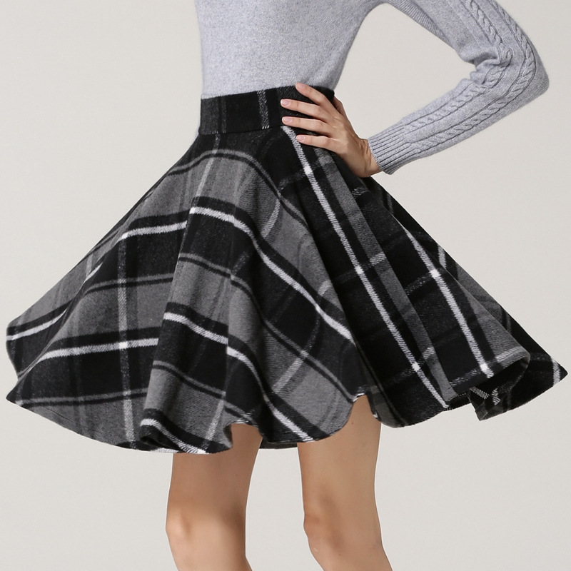 秋冬歐美時尚高腰毛呢半身格紋蓬蓬裙大擺A字裙中長裙廠家批發(fā)潮 /