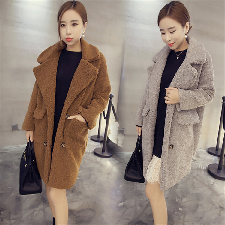 儷人2015冬季新款韓版中長款加厚外套羊羔毛雙排扣口袋大衣女 /