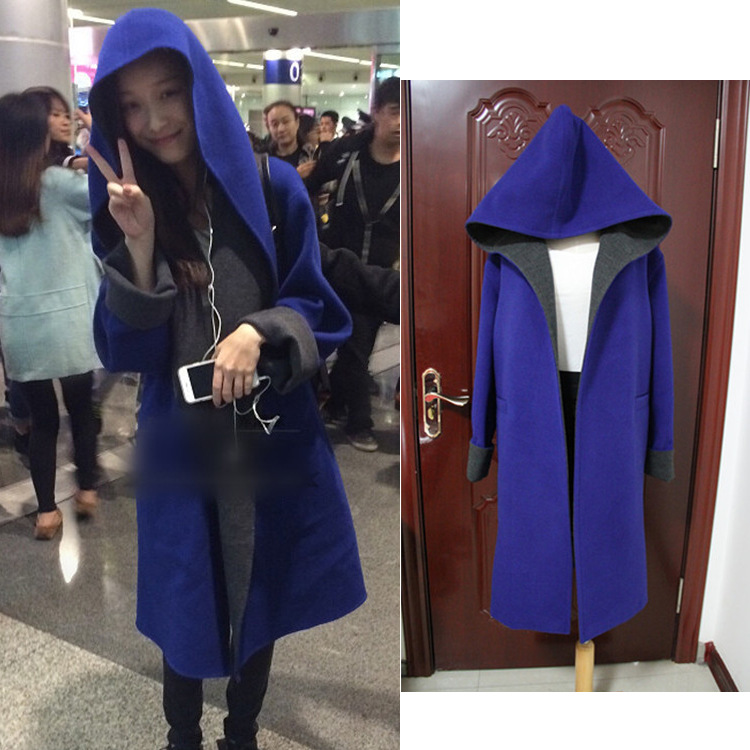 2015秋冬新款倪妮同款連帽雙面毛呢外套 明星同款毛呢外套大衣女 /