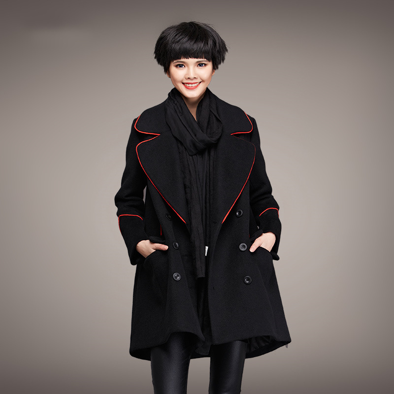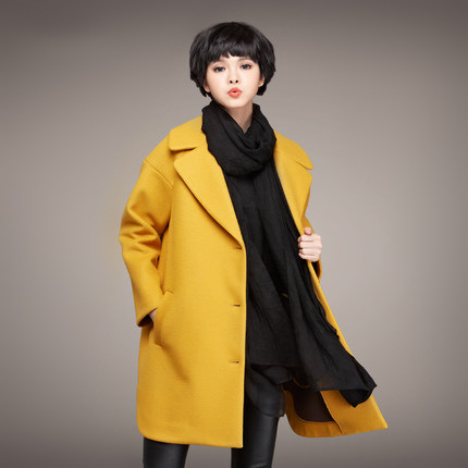 邑品2015冬裝新款大碼寬松毛呢外套雙排扣中長款羊毛呢大衣Y38463 /