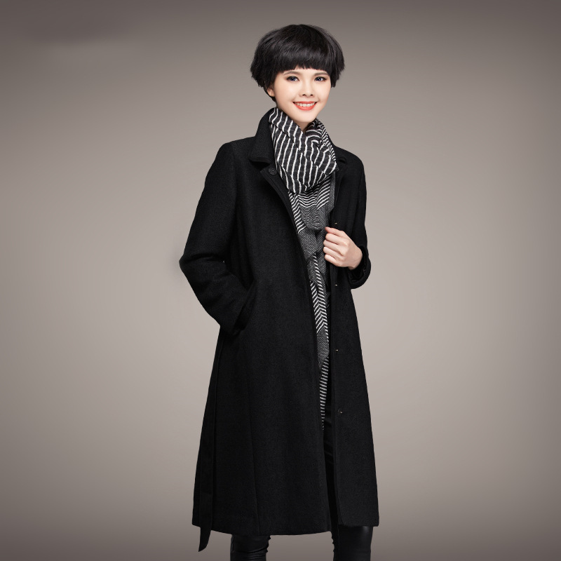 邑品2015秋冬新款單排扣中長款毛呢外套大碼寬松羊毛呢大衣Y38469 /