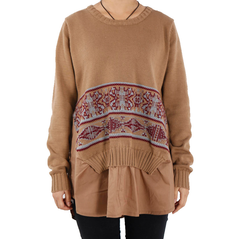 簡介:                                   貨源類別現(xiàn)貨                          主圖來源實(shí)拍有模特                          風(fēng)格簡約                          圖案印花                          工藝拼貼/拼接                          庫存類型整單                          款式基本款                          組合形式假兩件                          裙長短裙                          領(lǐng)型圓領(lǐng)                          袖型常規(guī)袖                          袖長長袖                          腰型寬松腰                          衣門襟套頭                          流行元素拼接,印花                          上市年份/季節(jié)2015冬季                          面料名稱毛線                          主面料成分棉                          主面料成分的含量60(%)                          主面料成分2聚酯纖維(滌綸)