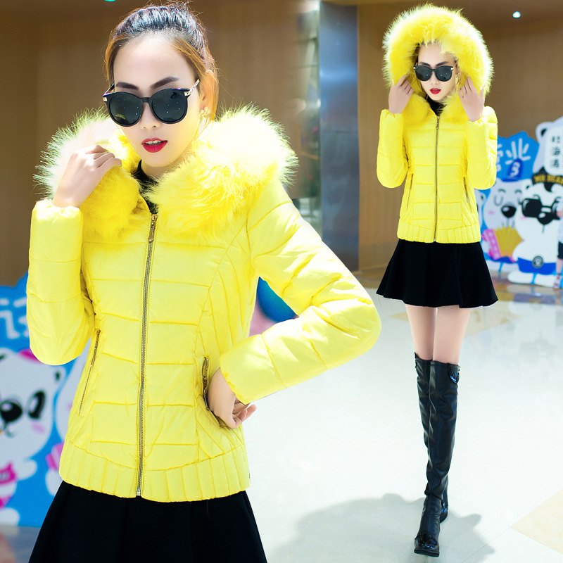 2015韓版潮修身冬外套顯瘦女裝連帽大毛領(lǐng)加厚棉衣短款羽絨棉服女 /