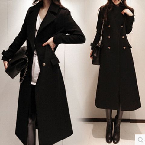 羊毛呢大衣2015秋冬裝新款修身顯瘦歐美長(zhǎng)款加厚黑色呢子外套女裝 /