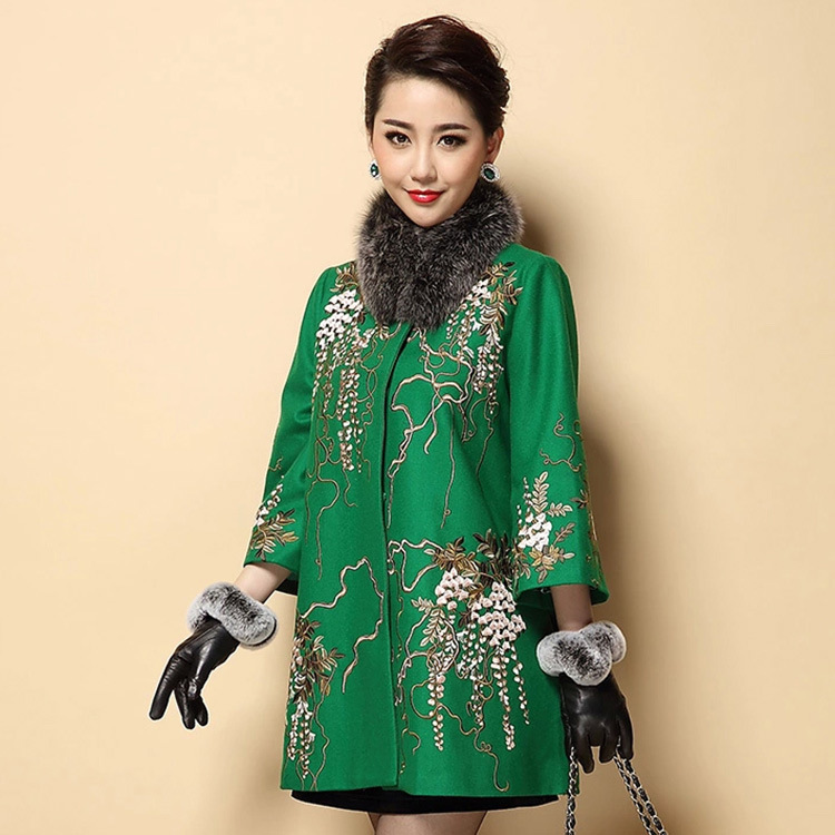 2015中老年女裝秋冬新款時尚媽媽裝刺繡亮麗中長款外套大衣45-55 /