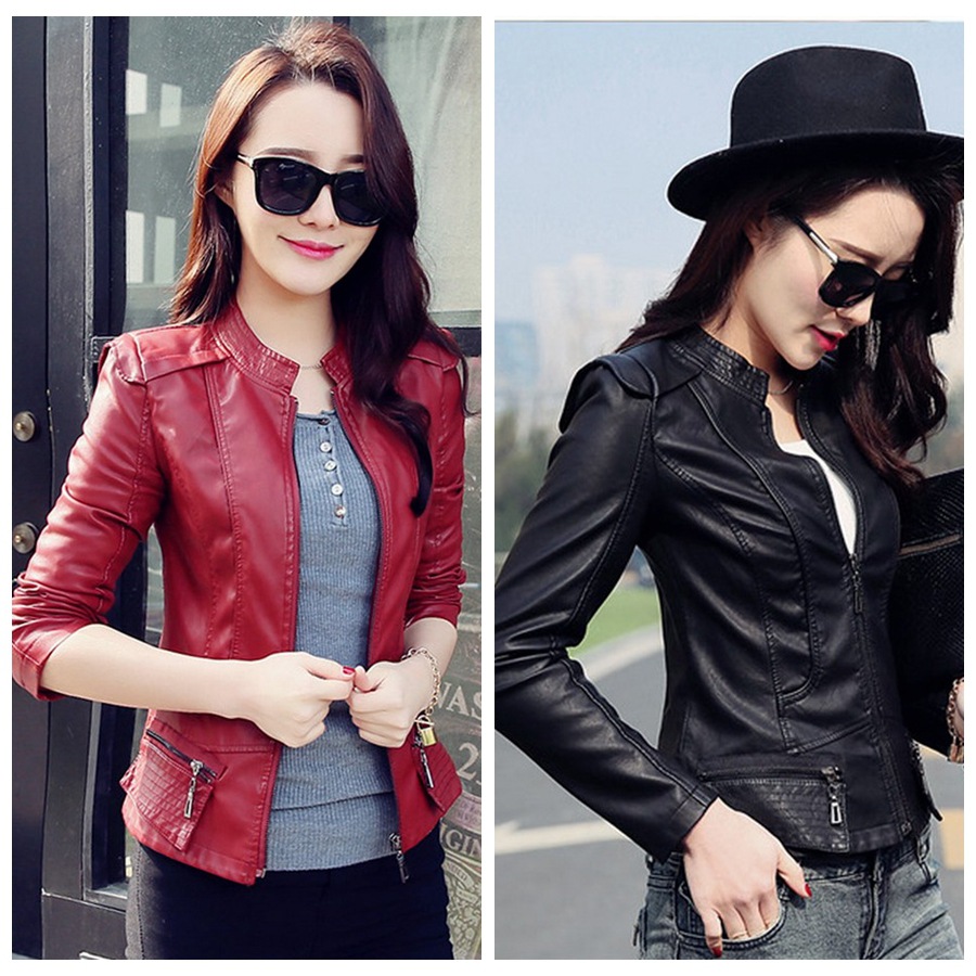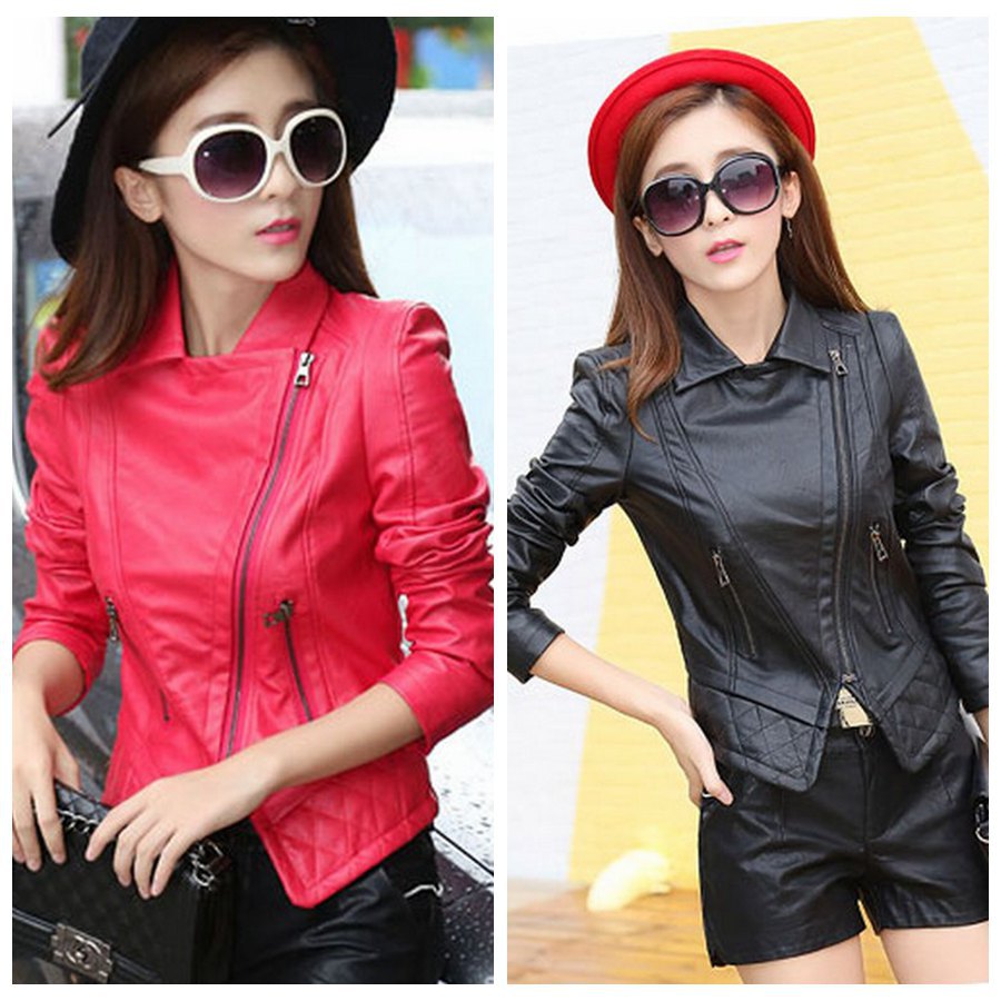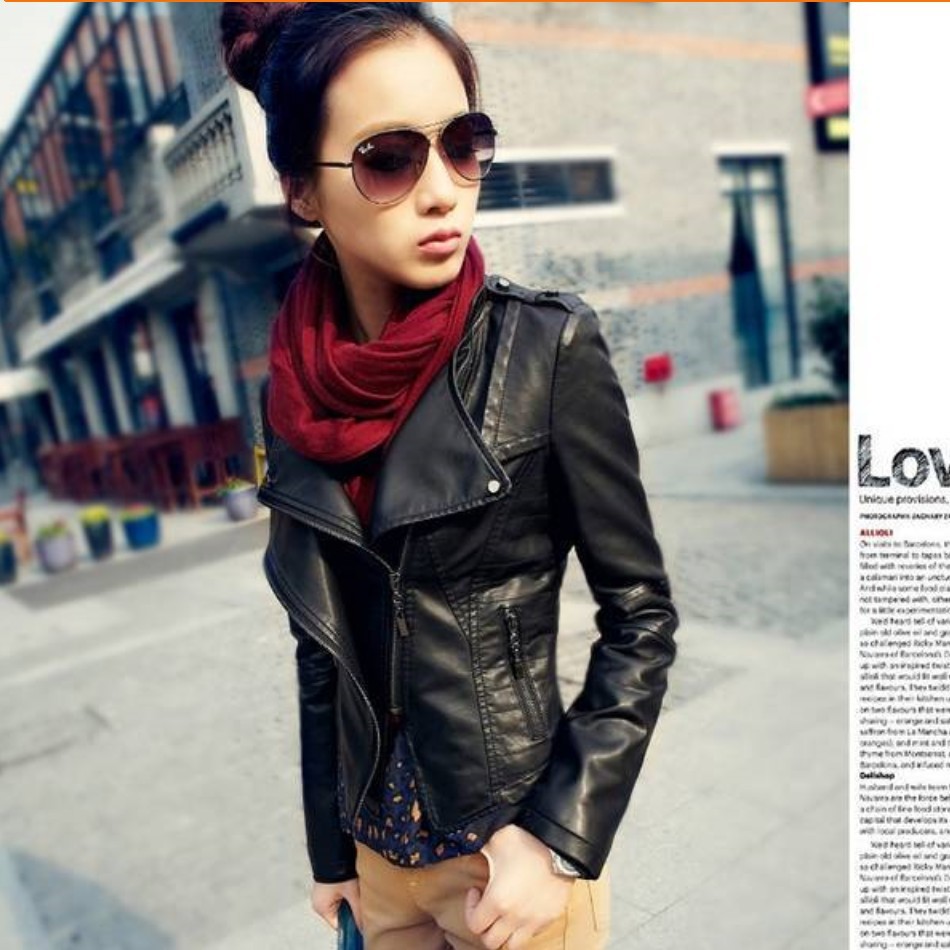 天貓商城女裝PU水洗皮衣大碼女裝秋冬季歐美胖mm修身顯瘦機車皮衣 /