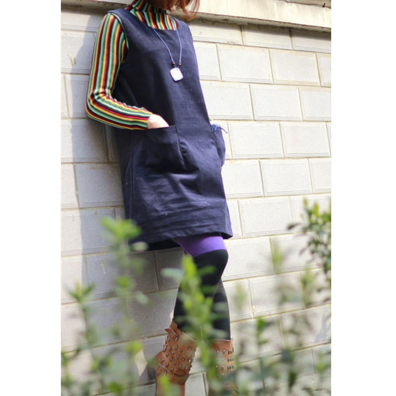春秋冬全棉燈芯絨背心馬甲裙文藝森系學(xué)院風(fēng)純色顯瘦打底連衣裙 /