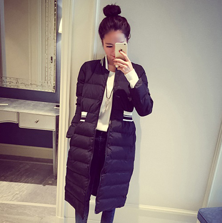 2015冬季新品女裝韓版加厚保暖條紋中長款收腰顯瘦修身棉衣棉服 /