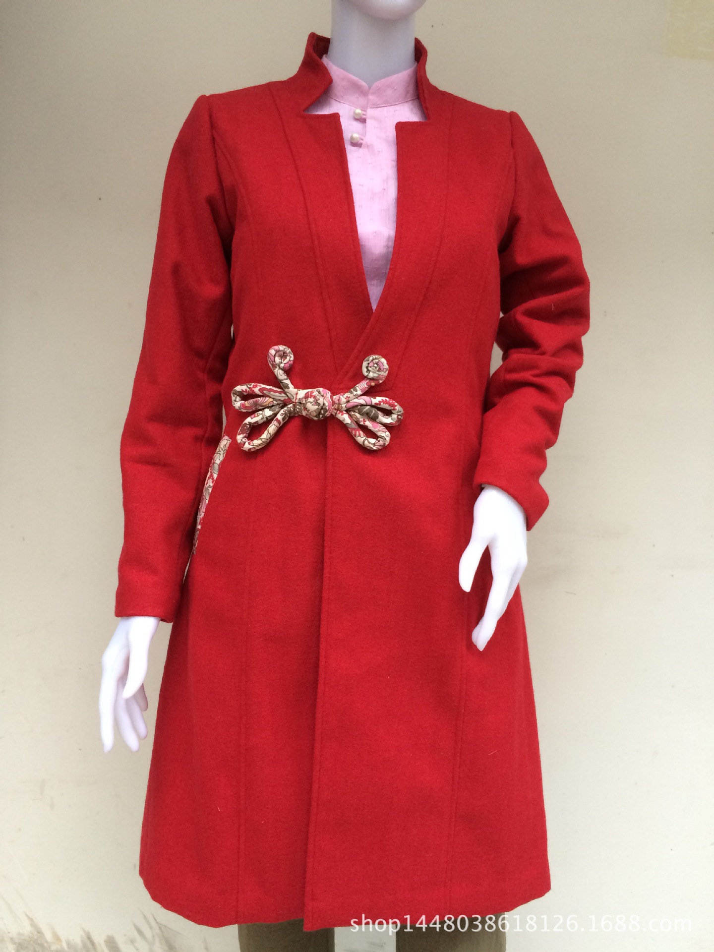 復(fù)古文藝甜美風(fēng)毛呢外套中國風(fēng)女裝民族風(fēng)手工盤扣立領(lǐng)民國風(fēng)口袋 /