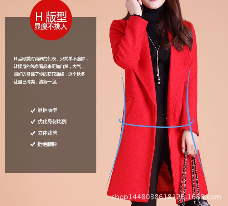 氣質(zhì)羊毛呢外套女 2015歐韓秋冬新款女裝 修身顯瘦中長款呢子大衣 /