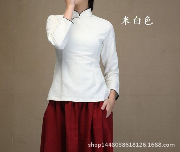 改良漢服女棉麻長袖旗袍上衣秋裝茶人服斜襟盤扣修身中式唐裝 /