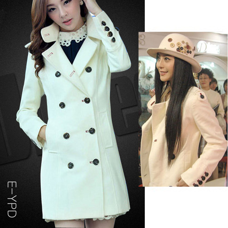 2015秋冬新款范冰冰同款修身白色毛呢短中長厚外套大衣風(fēng)衣 /
