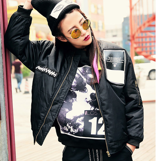 韓國原宿刺繡印花加厚棉衣棒球服短款寬松大碼棉服棉襖外套 /