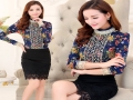 加絨加厚2015新款韓版女裝蕾絲上衣雪紡衫打底衫女長袖 /