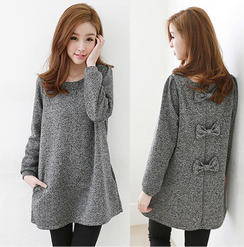 2015秋裝新款女上衣長袖t恤中長款寬松打底衫女外穿小衫女潮 /