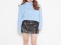 東大門秋冬新款韓版半高領(lǐng)短款前短后長毛衣女套頭釘珠針織衫 /