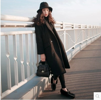 2015韓版中長款A(yù)字雙排扣大衣毛呢外套女 毛呢大衣 風(fēng)衣女裝 /