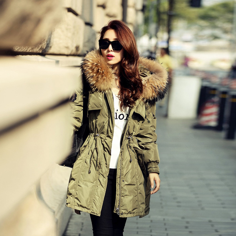 歐洲站2015冬裝新款羽絨服女中長款韓版修身毛領(lǐng)連帽奢華加厚外套 /