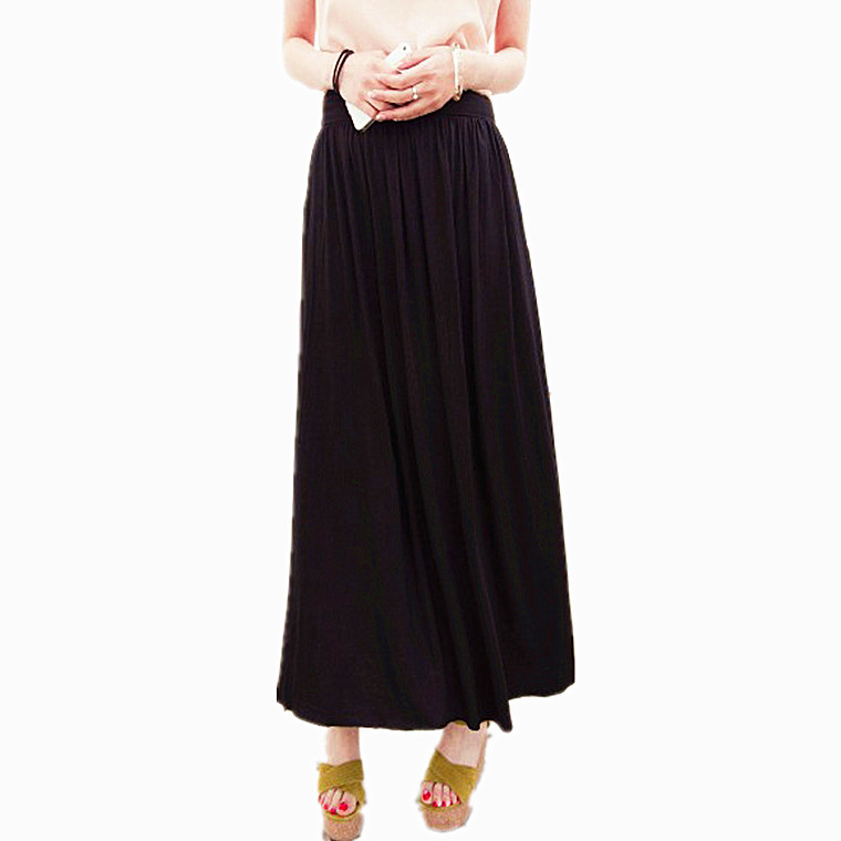 2015歐美風純色垂墜感莫代爾拖地高腰長裙大擺裙半身裙 沙灘裙女 /