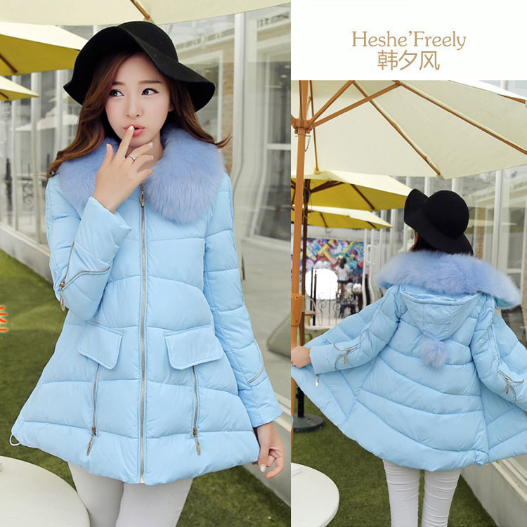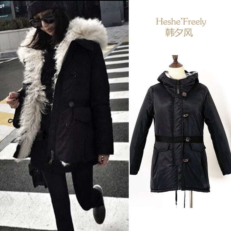 2015冬裝林允兒同款外套大毛領(lǐng)中長款加厚韓國大碼工裝棉服軍大衣 /