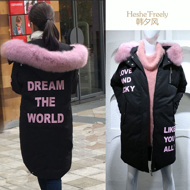 2015冬裝 東大門李小璐同款羽絨外套字母印花韓版休閑大毛領(lǐng)外套 /
