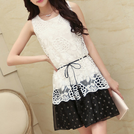 2015春夏季女裝新品韓版大碼蕾絲歐根紗短裙雪紡連衣裙 /